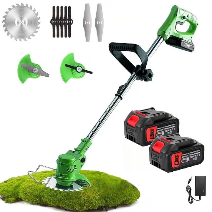 Dacă vorbim strict de motocoase electrice, cea care mi s-a părut cea mai reușită este motocoasa electrică cu acumulator EDAR, 48V. Este modelul care se apropie cel mai mult de ideea de „electrică serioasă”. Are putere constantă, lame metalice rezistente și o construcție solidă. Pentru o curte medie sau chiar mai mare, întreținută regulat, aceasta este alegerea pe care aș face-o fără ezitare dacă aș vrea să evit benzina.