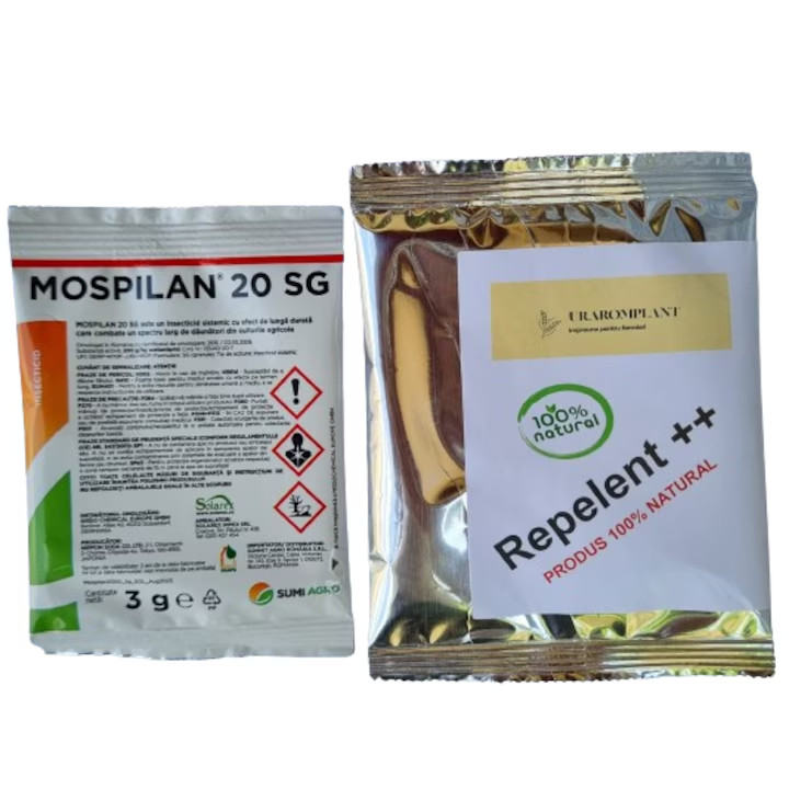 Mospilan este mai cunoscut din zona agricolă, dar este folosit și pentru combaterea insectelor în general. În acest pachet este combinat cu un repelent natural.