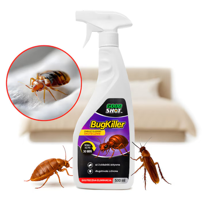 Goodshot este unul dintre puținele spray-uri dedicate explicit ploșnițelor. Acționează rapid și promite protecție de lungă durată. Se aplică pe saltele, rame de pat, plinte și zonele unde ploșnițele se ascund frecvent.